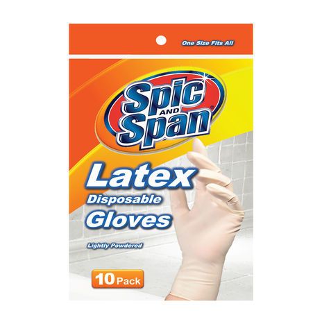 Spic and Span One Size Fits All Latex Disposable Gloves - 10 Pack