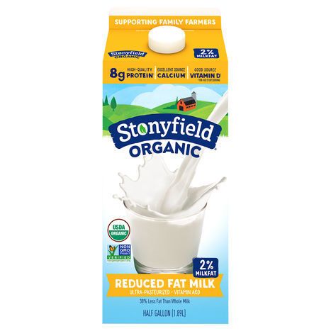 Stonyfield Organic Milk, Reduced Fat, 2% Milkfat - half gallon