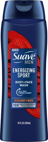 Suave Body + Face Wash, Bergamot & Wood, Energizing Sport - 18 Fluid Ounces