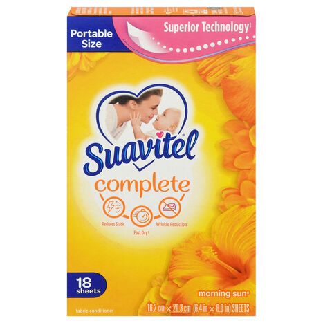 Suavitel Fabric Conditioner Sheets, Morning Sun, Portable Size - 18 Sheets