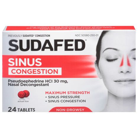Sudafed Sinus Congestion, Maximum Strength, 30 mg, Tablets - 24 Tablets