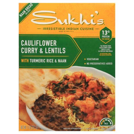 Sukhi's Mild Cauliflower Curry & Lentils with Turmeric Rice & Naan - 11 Ounces