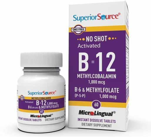 Superior Source No Shot Vitamin B12 Methylcobalamin 1000 mcg with B6 Methyl Folate MicroLingual Instant Dissolve Tablets - 60 Count