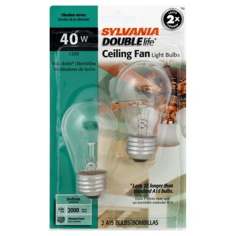 Sylvania Light Bulbs, Ceiling Fan, A15, Clear, 40 Watts - 2 Bulbs