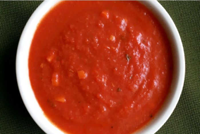 A slow-cooked sauce made with tomatoes, carrots, celery, onions, garlic, olive oil, and fresh basil.