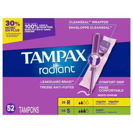 Tampax Regular/Super Absorbency Unscented Tampons - 52 Tampons