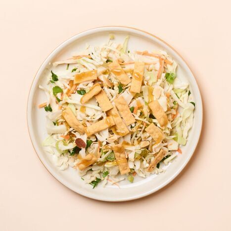 This kit mixes crunchy wonton strips, almonds, and sesame dressing with a tasty blend of green and savoy cabbage, celery, carrot, green onion, and cilantro. Take this convenient kit on the go for lunch or turn it into a quick and easy dinner for your crew by adding your protein of choice. Savoy Cabbage, Asian Sesame Dressing (Expeller Pressed Soybean Oil, Water, Sugar, Soy Sauce [Water, Soybeans, Wheat, Salt], Distilled Vinegar, Sesame Seed Oil, Salt, Pineapple Juice Concentrate, Sesame Seeds, Xanthan Gum, Spice, Carrageenan, Oleoresin Rosemary), Green Cabbage, Carrot, Celery, Crispy Wonton Strips (Wheat Flour, Canola Oil, Water, Salt), Almonds, Green Onion, Cilantro.