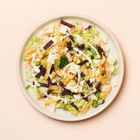 Looking for a healthy, quick side to give your family and get in those daily veggies? Bright and fresh, this salad features green cabbage, romaine, carrots, green onions, and cilantro. Sprinkle on the included pumpkin seeds and tortilla strips for crunch and texture (don’t tortilla strips make everything better?). Then toss with our creamy cilantro dressing for a delicious, nutrition-packed meal.