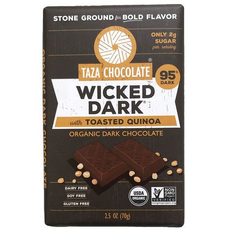Taza Chocolate Amaze Bar, Wicked Dark 95% Puffed Quinoa, Organic Dark Chocolate, - 2.5 Ounces