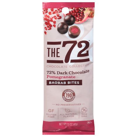 The 72 Chocolate Collection Baobab Bites, 72% Dark Chocolate, Pomegranate - 1.5 Ounces