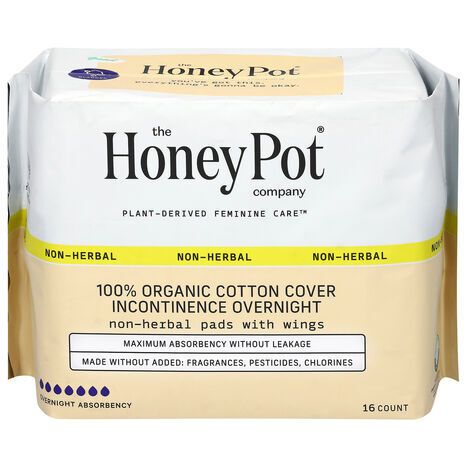 The Honey Pot Company 100% Organic Cotton Cover Incontinence Non-Herbal Overnight Absorbency Pads with Wings - 16 Pads