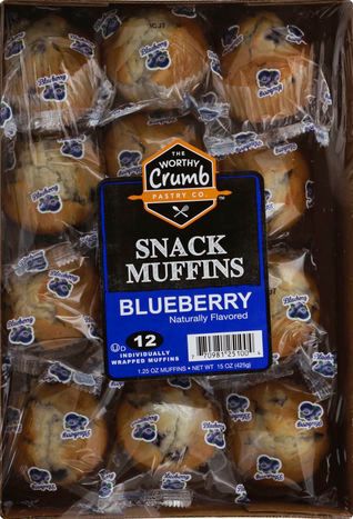 The Worthy Crumb Muffins, Snack, Blueberry - 12 x 1.25 Ounce Muffins
