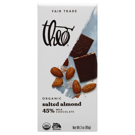 Theo Salted Almond, Organic, 45% Milk Chocolate - 3 Ounces