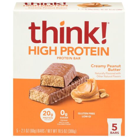 ThinkThin Protein Bars, High, Creamy Peanut Butter, Chocolate Dipped - 5 Each