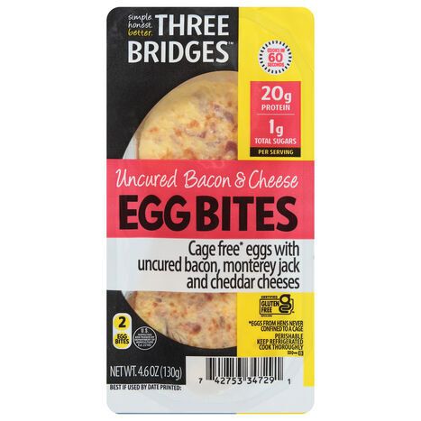 Three Bridges Egg Bites, Uncured Bacon & Cheese - 2 Egg Bites