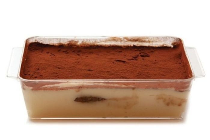 Ingredients: Eggs, sugar, mascarpone cheese, lady fingers, espresso, cocoa powder. Allergens: dairy, eggs, wheat.