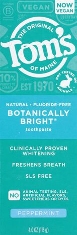 Tom's of Maine Botanically Bright Peppermint Toothpaste - 4 Ounces