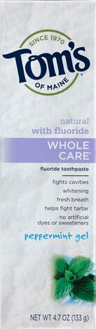 Tom's of Maine Toothpaste, Fluoride, Whole Care, Peppermint, Gel - 4.7 Ounces