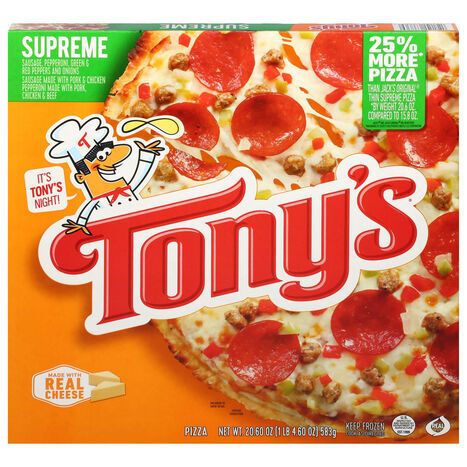 Enriched Flour (Wheat Flour, Malted Barley Flour, Niacin, Reduced Iron, Thiamine Mononitrate, Riboflavin, Folic Acid) Water Low Moisture Part Skim Mozzarella Cheese (Cultured Pasteurized Part Skim Milk, Salt, Enzymes) Cooked Pizza Topping (Sausage [Pork, Mechanically Separated Chicken, Spices, Water, Salt, Sugar, Garlic Powder], Water, Textured Vegetable Protein [Soy Flour, Salt]) Vegetable Blend (Green and Red Pepper, Onion) Tomato Paste Pepperoni Made with Pork Chicken and Beef (Pork, Mechanically Separated Chicken, Beef, Salt, Contains 2% or Less of: Water, Dextrose, Spices, Smoke Flavoring, Lactic Acid Starter Culture, Sodium Ascorbate, Flavoring, Garlic Powder, Sodium Nitrite, BHA, BHT, Citric Acid, Contains One or More of: Paprika, Oleoresin of Paprika) Contains 2% or Less of: Yeast Palm Oil Sugar Vegetable Oil (Soybean and/or Canola Oil) Salt Modified Food Starch Spice Maltodextrin Hydrolyzed Soy and Corn Protein Dried Garlic Paprika Wheat Starch L-Cysteine Hydrochloride Ammonium Sulfate Soy Lecithin Natural Flavor Enzymes (Contains Wheat) Ascorbic Acid
