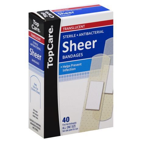 TopCare Bandages, Sheer, Translucent, All One Size - 40 Count