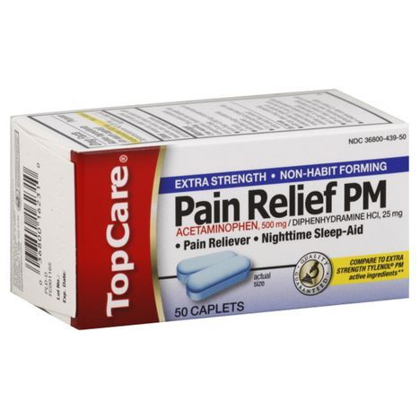 TopCare Pain Relief PM, Extra Strength, Caplets - 50 Cp
