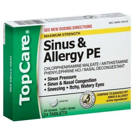 TopCare Sinus & Allergy PE, Maximum Strength, Tablets - 24 Count