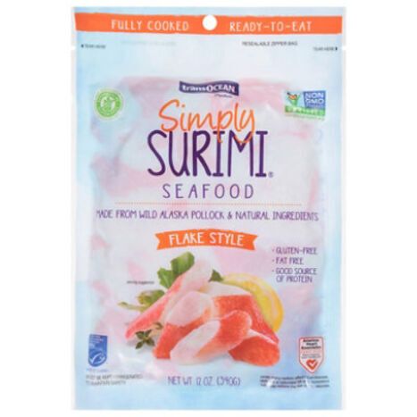 Alaska Pollock (Fish), Water, Pea Starch, Cane Sugar, Sea Salt, Oat Fiber, Natural Flavor, Potassium Chloride (Salt Replacer), Color Added (Lycopene from Tomato).