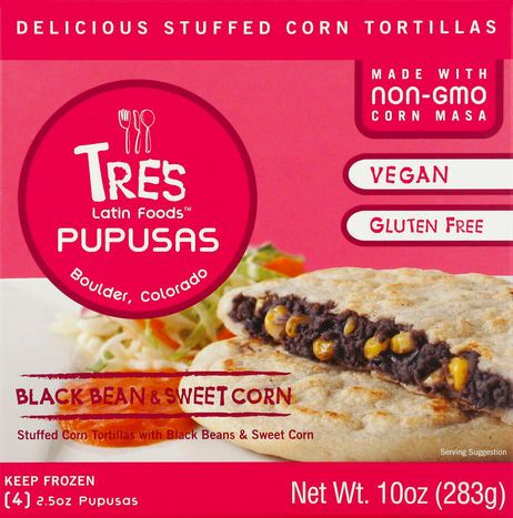 Tres Latin Foods Pupusas, Black Bean & Sweet Corn - 4 x 2.5 Ounces