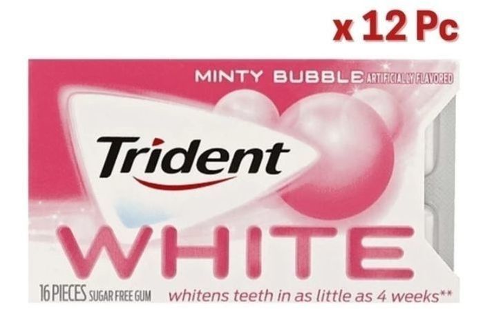 Trident White Chewing Gum - Minty Bubble (16 Pcs) 12 Pc
