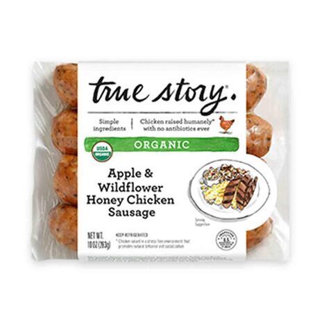 True Story creates natural meat products using simple ingredients and sustainable farming practices. These organic sausages are made from whole cuts of chicken, rather than ground meat, giving them a delicious texture and flavor. Seasoned with a blend of dried apples and wildflower honey, they’re excellent grilled and paired with grains or served with breakfast. Use within 60 days after thawing. Once opened, use within 4 days