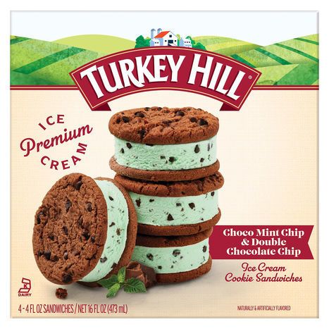 Turkey Hill Ice Cream Cookie Sandwiches, Choco Mint Chip & Double Chocolate Chip - 4 x 4 Fluid Ounce Sandwiches