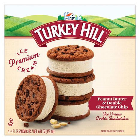Turkey Hill Ice Cream Cookie Sandwiches, Premium, Peanut Butter & Double Chocolate Chip - 4 x 4 Fluid Ounce Sandwiches