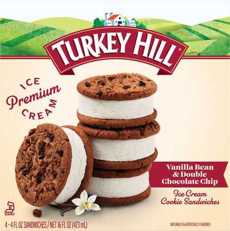 Turkey Hill Ice Cream Cookie Sandwiches, Vanilla Bean & Double Chocolate Chip - 4 x 4 Fluid Ounce Sandwiches