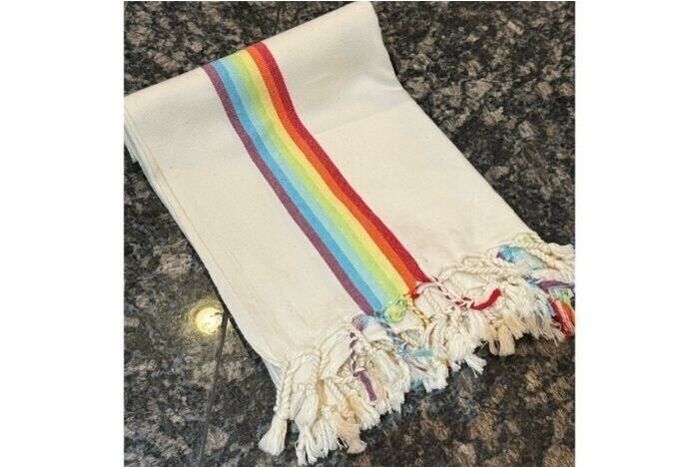 Turkish Towel %100 Cotton Rainbow Collection Color: White with Rainbow