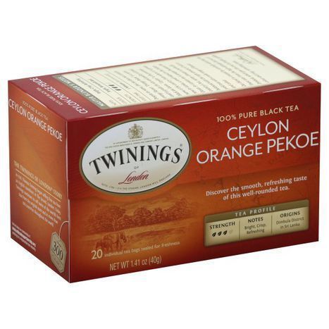 Twinings Black Tea, 100% Pure, Ceylon Orange Pekoe, Tea Bags - 6 Pack - 20 Teabags