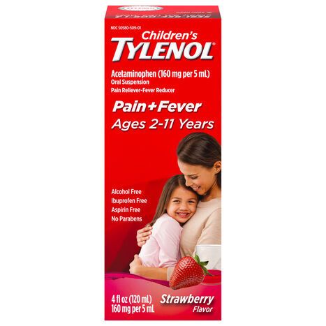 Active Ingredient (in each 5 ml = 1 Teaspoon): Acetaminophen (160 mg). Inactive Ingredients: Butylparaben, Carboxymethylcellulose Sodium, Cellulose, Citric Acid, Corn Syrup, FD&C Red No. 40, Flavors, Glycerin, Propylene Glycol, Purified Water, Sodium Benzoate, Sorbitol, Sucralose, Xanthan Gum.