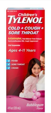 Tylenol Cold + Cough + Sore Throat, Bubble Gum Flavor, Children's, Ages 4-11 Years - 4 Fluid Ounces