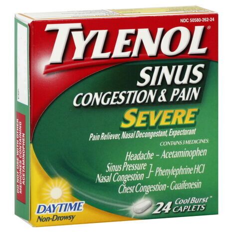 Tylenol Sinus Congestion & Pain, Severe, Cool Burst Caplets - 24 Caplets