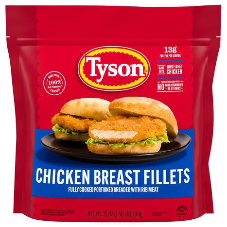 Boneless Chicken Breast Fillets With Rib Meat, Water, Salt. Breaded with: Wheat Flour, Water, Salt, Corn Starch, Spices, Brown Sugar, Dried Garlic, Extractives of Paprika, and Spice Extractives, Breading set in Vegetable Oil. No preservatives.