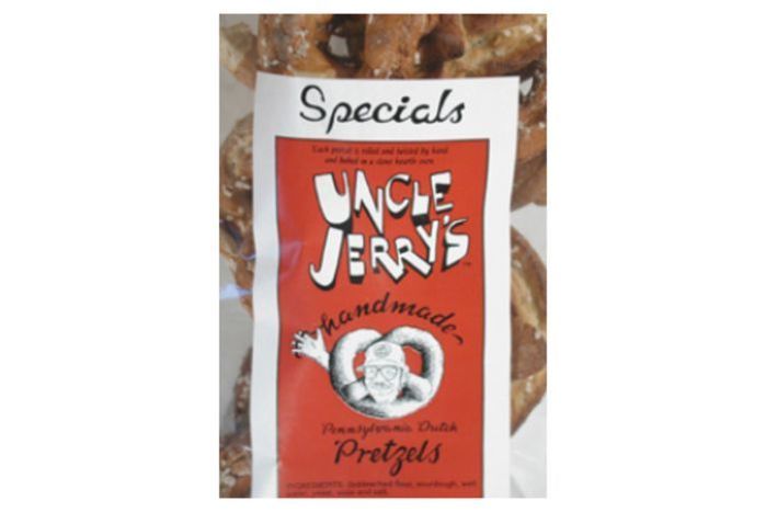 Made by hand in Lancaster County, Uncle Jerry's Pretzels have a completely different taste than pretzels twisted by machines. Hand made pretzels have a lighter texture and crisper crunch to them, because the dough is rolled and kneaded as opposed to being extruded under high heat and intense pressure from gigantic machines. Using a sourdough starter, Uncle Jerry's pretzels are fat, crunchy and full of salt. While we have no hesitation in recommending these pretzels, it is important to understand that the same qualities that make them delicious also make them more fragile. So if you have them shipped, expect them to arrive broken. But as no one, outside of my family, can eat a whole Uncle Jerry's pretzel in one bite, it shouldn't matter.