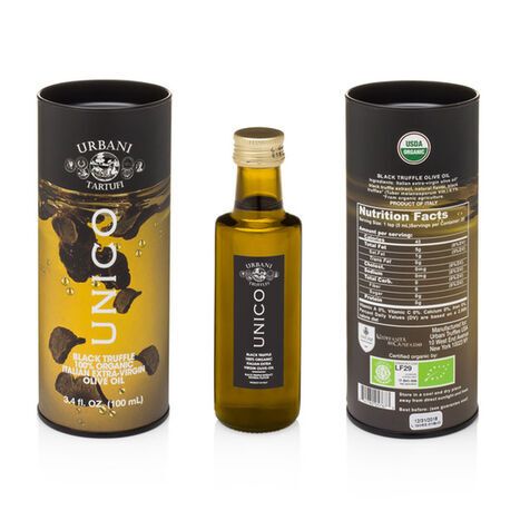The Organic Extra Virgin Olive Oil with Black Truffle from Urbani is part of a line of products called UNICO. Unico in Italian means unique and Urbani's truffle extra virgin olive oils are unique because they are made only with 100% Organic Italian Extra Virgin Olive Oil certified and real black truffles Tuber Melanosporum Vitt. nAll the flavor of the magnificent black truffles is infused in excellent Italian extra virgin olive oil. nHere there is not a drop of chemical flavoring used to make this product! If you look closely at the bottle, you can see there are actual truffle pieces inside the bottle!nnIngredients: Italian extra virgin olive oil, black winter truffle extract, natural flavor, black truffles Tuber Melanosporum Vitt. nnPairing ideas: meat dishes, eggs, pizza, pasta, risotto and grilled vegetables.nnCompany History:nUrbani is the most esteemed truffle distributor in the world, is led by Paolo and Bruno Urbani, direct descendant brothers of the name founders. Based in the Umbria region, trusted with more than 70% of European fresh truffle sales, Urbani is unrivaled in the distribution of this admired tuber.