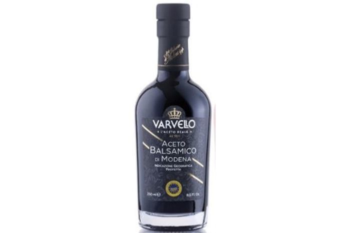 The result of the aging of Varvello Balsamic Vinegar of Modena PGI using the Sangiovese and Lambrusco grape varieties. This vinegar, which is aged in barriques and oak barrels, reaffirms the highest standards of the traditional Varvello quality. Dark brown color with red reflections, high density, sweet and sour taste (with notes of wood, cooked fruits, plum, vanilla and cherry), balanced and pleasant. It is excellent on red meat (even raw), roast meats, risottos, Grana Padano Cheese, on ice cream and berries.