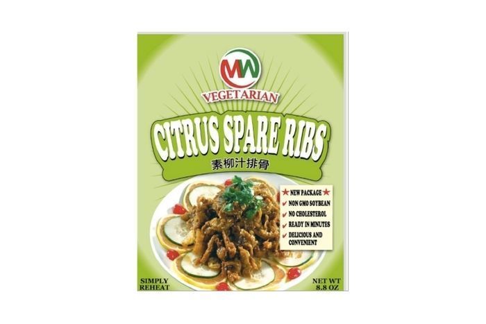 INGREDIENTS: Textured Soybean Protein (Soybean Protein, Wheat Protein, Wheat Starch, Calcium Carbonate, Calcium Sulfate), Water, Maltose, Soy Sauce (Water, Soybean, Wheat, Salt), Soybean Oil, Plum Juice, Vinegar, Isolated Soybean Protein, Raw Cane Sugar, Mirin, White Pepper Powder, Wheat Protein, Tapioca Modified Starch, Trehalose. Contains less than 0.5% of: Vegan Flavor (Vegetable Oil, Carboxylic Acids, Furans), Flavoring Agents (I+G, Glycine, DL-Alanine), Salt, Transglutaminase, Yeast Extract, Licorice Powder, Cinnamon. COOKING SUGGESTIONS: Slice desired vegetables (carrot or green bell peppers) and spare ribs into small pieces. Stir fry seasonings (1/3T oil, 1/3T soy paste, 2/5T BBQ sauce, and a pinch of salt) with water. Once the seasoning boils, include vegetables and spare ribs into wok. Let it boil again and 1/2T of cornstarch water to thicken. Serve and enjoy!