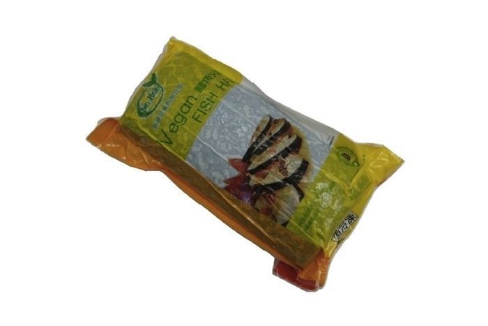 INGREDIENTS: Water, Textured Soybean Protein (Soybean Protein, Wheat Protein, Wheat Starch, Calcium Carbonate, Calcium Sulfate), Soybean Oil, Isolated Soybean Protein, Modified Tapioca Starch, Vegetable Fiber (Soy Fiber), Raw Cane Sugar, Ginger, Salt. Contains less than 0.5% of: Vegetarian Flavor (Ginger Oil, Sesame Oil, Fatty Acid Glycerides), Flavoring Agents (I+G Glycine), White Pepper Powder, Yeast Extract, Transglutaminase, Licorice Powder, Dried Seaweed. COOKING SUGGESTIONS: Slice the fish ham into slices, and pineapple chucks (4 oz.) and red peppers into small pieces. Stir fry seasonings (2T soy sauce, 3T orange juice concentrate, 2T cornstarch, 1/4T sugar, 1T vegetable oil, 1 1/2T grated fresh ginger root). Once the seasonings boils, include the vegetables and fish into pan. Feel free to turn the fish over to pan fry the other side. Pan fry the fish until it turns slightly brown. First place the fish onto the plate, then pour the seasonings and vegetables over. Serve and enjoy!