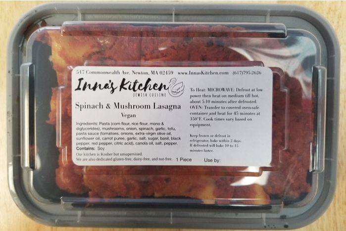 Delicious vegan lasagna with mushrooms, spinach, and tofu. Sold Frozen. One package contains one very large portion or two medium portions.