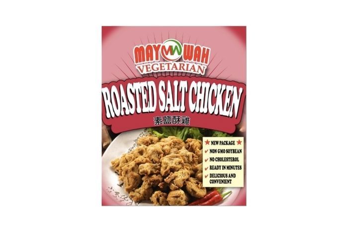 INGREDIENTS: Soybean Fiber, Wheat Protein Condense, Vegetable Oil, Salt, Vegetarian Seasoning (White Pepper, Black Pepper, Chinese Five Spice). COOKING SUGGESTIONS: Preheat the oven to 350 degrees. Line the roasted salt chicken side by side on a baking pan with little oil. Bake the roasted salt chicken in the oven for 30 minutes or until golden brown. Feel free to turn the roasted salt chicken to the other side. Remove them from the oven with mittens. Serve hot and enjoy!