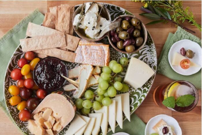 These products are shipped in a gift box, not plated or assembled on a board. The Vegetarian Cheese Feast proves that you can enjoy a satisfying spread without the meat. This gift box centers around a luxurious, diverse selection of cheeses made with vegetarian rennet, from irresistibly creamy feta swimming in olive oil to sweet, crystalline aged gouda. Made complete with crackers, olives, and a tart jam. A well-rounded gift or an easy hosting spread, this robust collection will please vegetarians and meat-eaters alike.