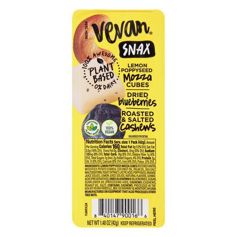 Vevan Snax, Lemon Poppyseed Mozza Cubes, Dried Blueberries, Roasted & Salted Cashews - 1.48 Ounces