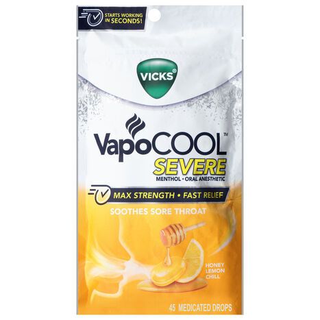 Vicks Medicated Drops Severe Max Strength Honey Lemon Chill Oral Anesthetic - 45 Drops