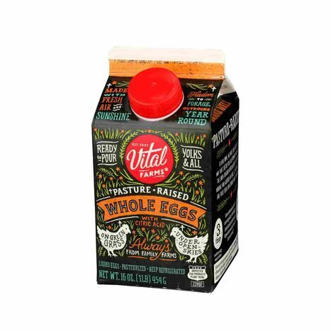 Equivalent to nine eggs. Pasture-raised goodness without the shells! We collect fresh eggs from our pasture-raised hens and crack them for you so all you have to do is pour to make baked goods, scrambles, and omelets with ease. These eggs—like all Vital Farms eggs—come from pasture-raised hens. Each of these ladies gets at least 108 square feet of outdoor space to roam, forage, take dust baths, and do regular chicken things! [Description provided by Vital Farms.] Pasture-Raised Whole Eggs, Citric Acid. Contains: Eggs